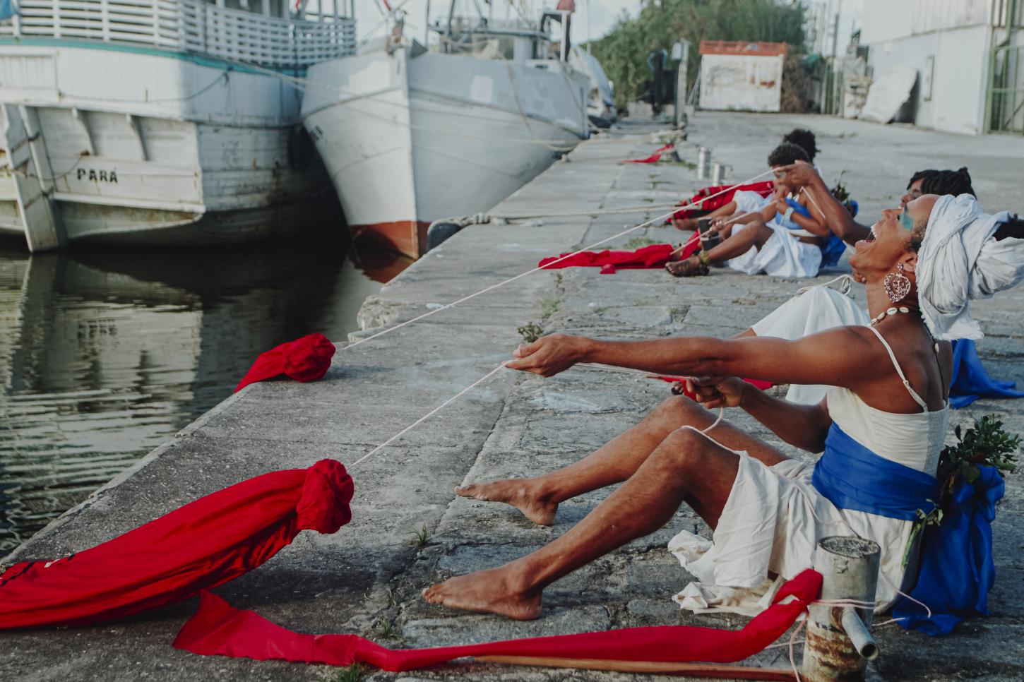 Segunda estação: comunidade do Pilar. Uma Pequena África? Que artistas negres lá residem? O que significa – no meio da comunidade! – uma Igreja Católica do século XVII ensimesmada em seu projeto colonial e circundada, por tudo e portanto, de tanta pobreza? Ao redor do Porto, do Cais, quantas existências negras reclamam uma história quando a própria História se nega a registrá-las?