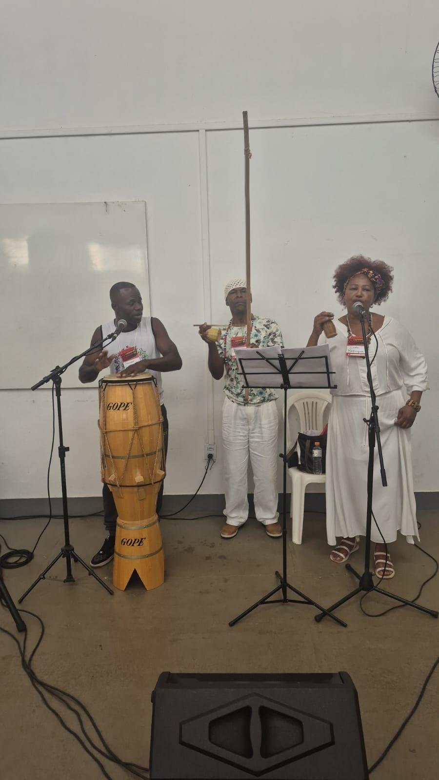 A solenidade de abertura foi marcada por uma simbólica apresentação de berimbau realizada pelo Mestre de Capoeira Monitor Azulão, reforçando a conexão indissociável entre cultura, resistência e ancestralidade.